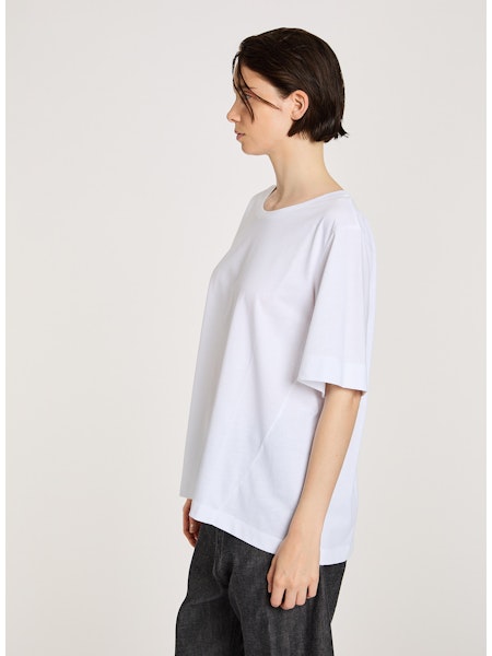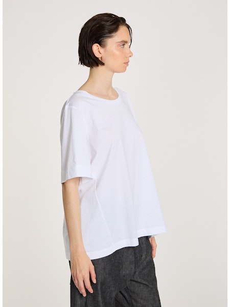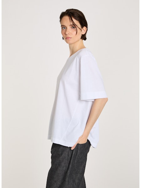T-Shirt aus Baumwolle, leichte A-Form. Gleich wie das Shirt Mac, aber 5 cm länger. Kann unter Pullover oder Jacken getragen werden, zu Hosen oder Jupe kombinierbar. Vielseitig einsetzbar. Ein Allrounder für jeden Tag.